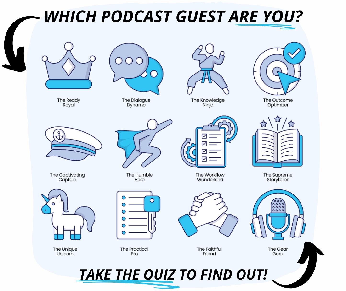Find out which of the 12 podcast guest personality types you are! Get a personalized roadmap for becoming a top 1% guest! ⭐️